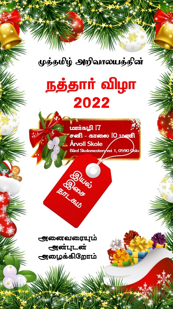 முத்தமிழ் அறிவாலயத்தின் பொங்கல் விழா எதிர்வரும் 21.01.2023காலை 10:00 மணிக்கு Årvoll பாடசாலையில் நடைபெறவுள்ளது. அன்றைய விழாவில் மாணவர்கள் பெற்றோர்கள், ஆசிரியர்கள் மற்றும் பாடசாலை நலன்விரும்பிகள் அனைவரும் […]